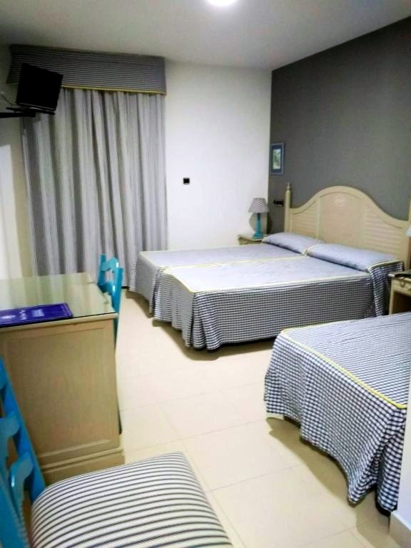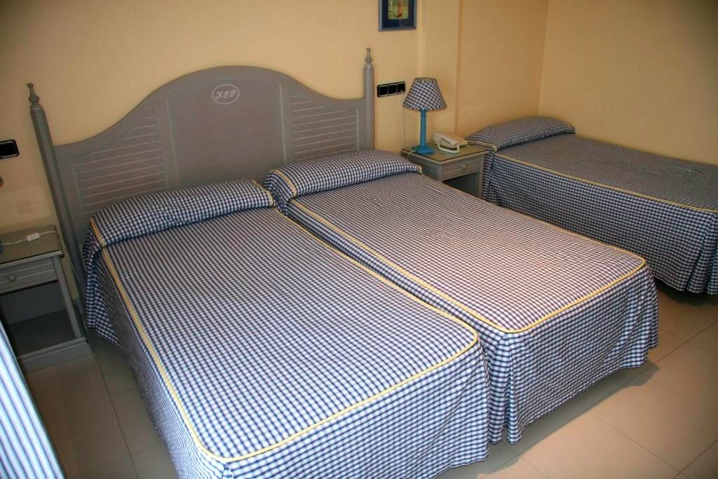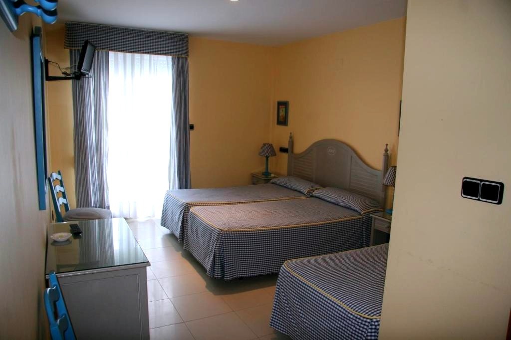 Habitación con tres camas y equipada con balcón, conexión Wi-Fi gratuita, calefacción y baño privado.